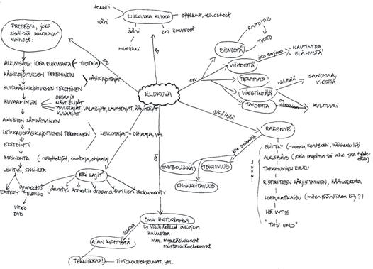 elokuva-käsitekartoista, joita tutkimusryhmän osanottajat myös